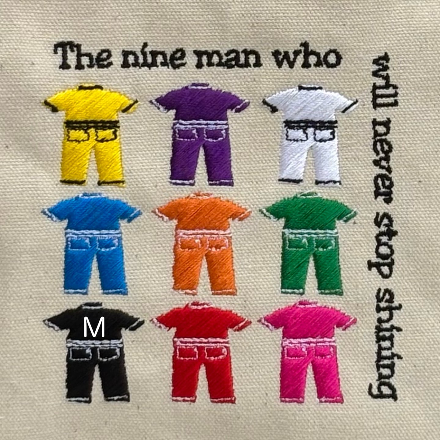 既製品のトートバッグに、9色のユニフォームを丁寧に刺繍しました。
